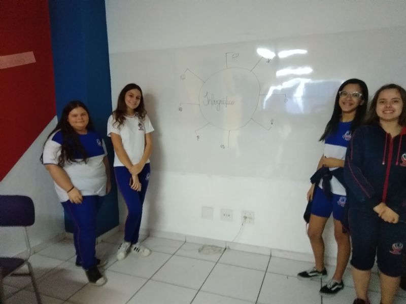 s alunos pesquisaram como montar um infográfico e apresentaram para os colegas, cada grupo criou um infográfico, onde usá- se a linguagem verbal e a linguagem nominal. Houve ao final a explicação da professora. Professora Ana Paula.